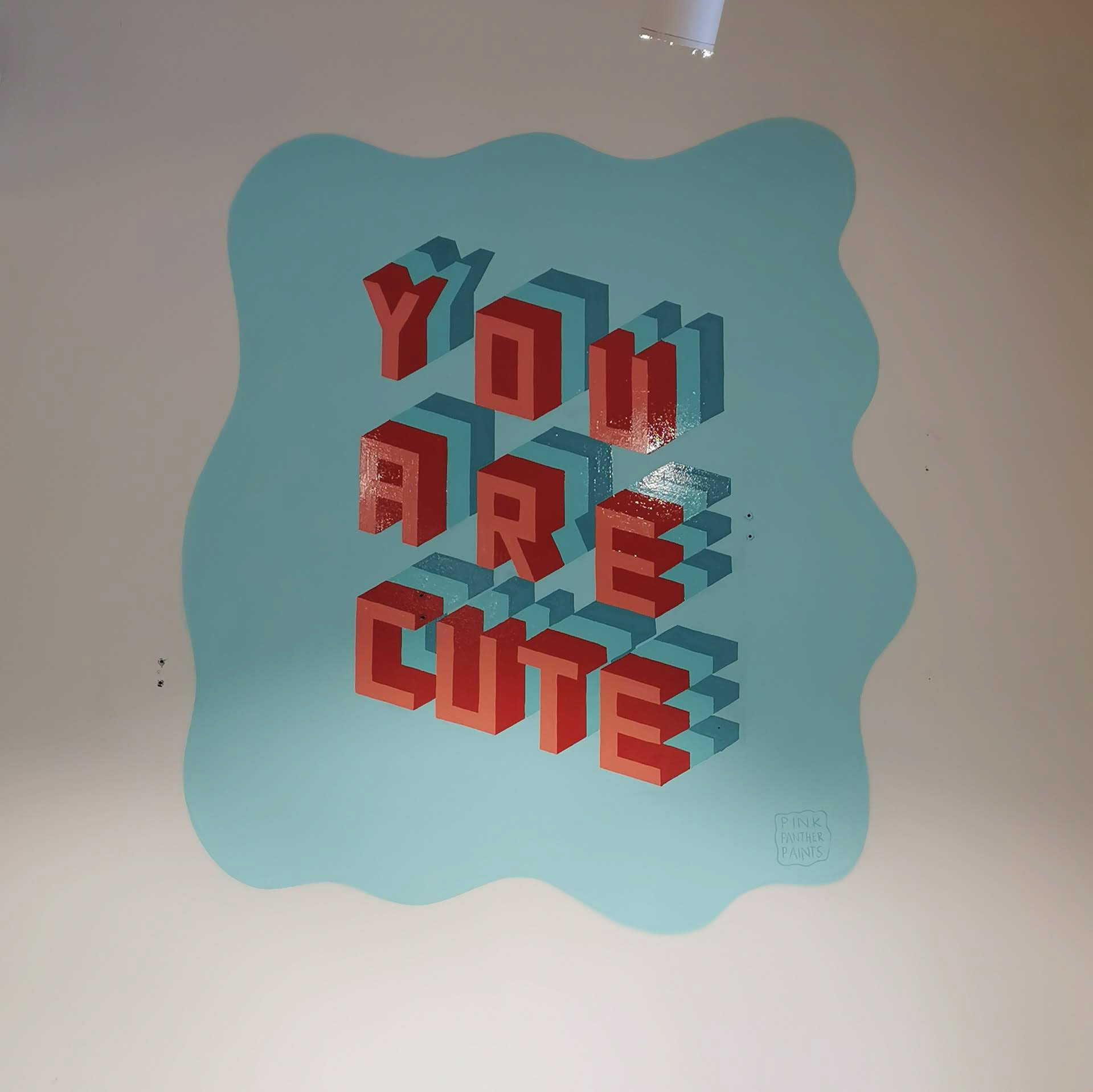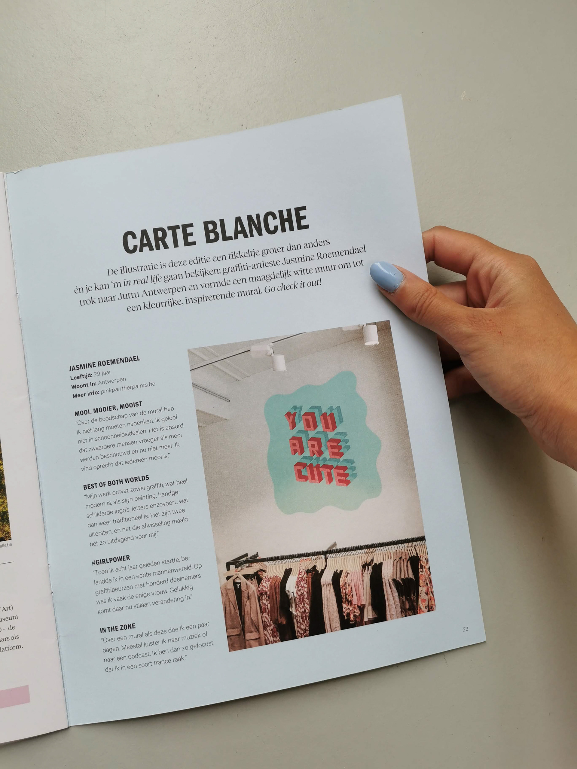 You can find this mural with a positive message in the Juttu store Meir, Antwerp.
